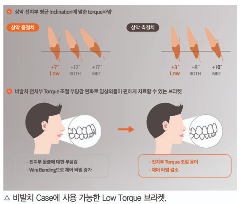 MAJESTYLowTorque’는여러증례에적용이가능하지만정상교합의평균Inclination에맞춘Torque사양으로특히비발치증례에가장적합하게사용이가능하다.
