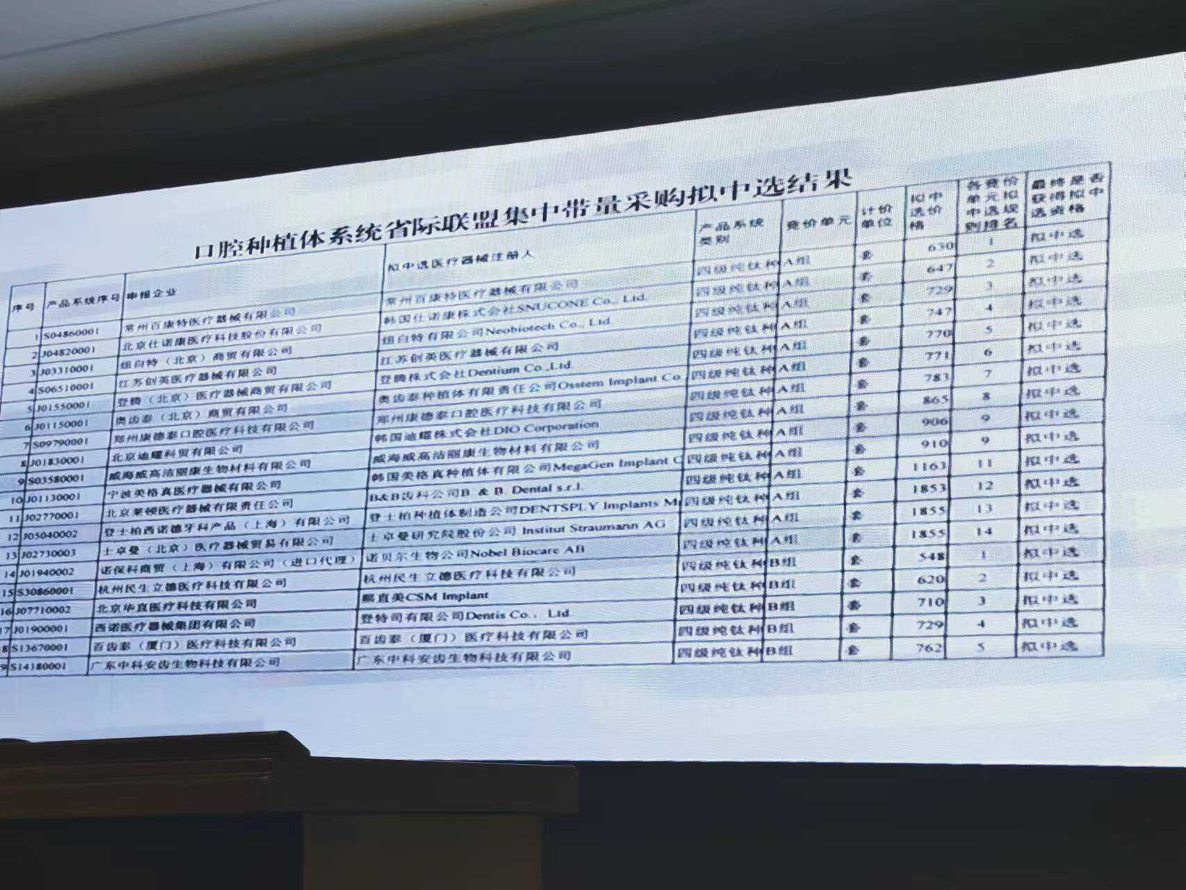 1月11日,由国家医保局指导、四川省医保局牵头开展的口腔种植体系统省际联盟集采在四川成都开标。