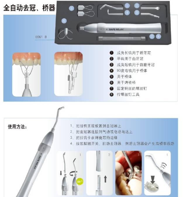 一)手动去冠器。适用于松动修复体。