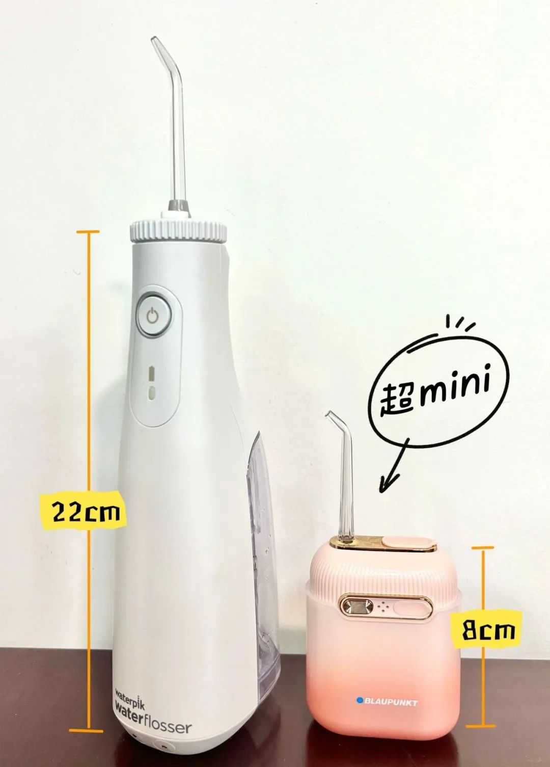 据介绍,本次样品均为便携款冲牙器,但各款尺寸大小存在一定差异。最小尺寸约为手机一半的大小,可轻松放入口袋。