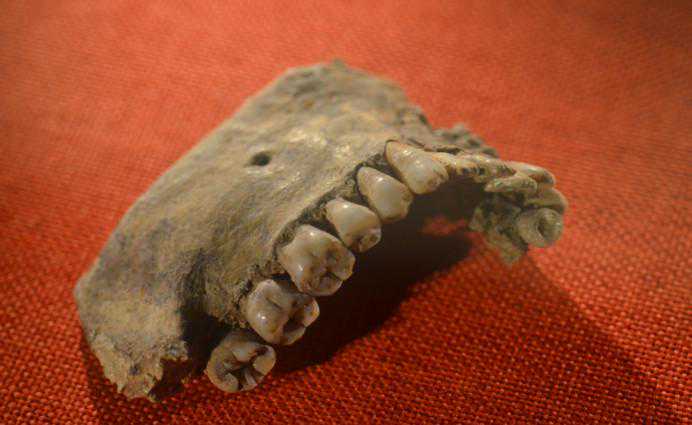 在西汉南越王墓中,专家们发现了墓主赵眜的下颌骨,骨头上留有12颗牙齿,并且没有蛀牙。从牙齿的磨耗程度、牙槽骨的萎缩状况以及牙齿的结构等多方面考察,得出了墓主死亡年龄约为40-45岁的结论。