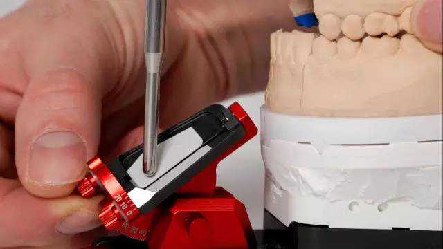 在对牙齿进行研磨之前,可利用诊断模型确定犬齿切导并按照定制的切导装置对其进行设置。