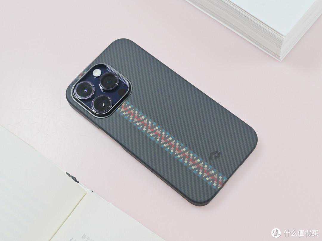 PITAKA凯夫拉全包手机壳,凯夫拉材质手感佳,达到军工防摔标准,保护性能好,支持magsafe,看中手机保护的可入,价格稍贵,但是一分钱一分货。