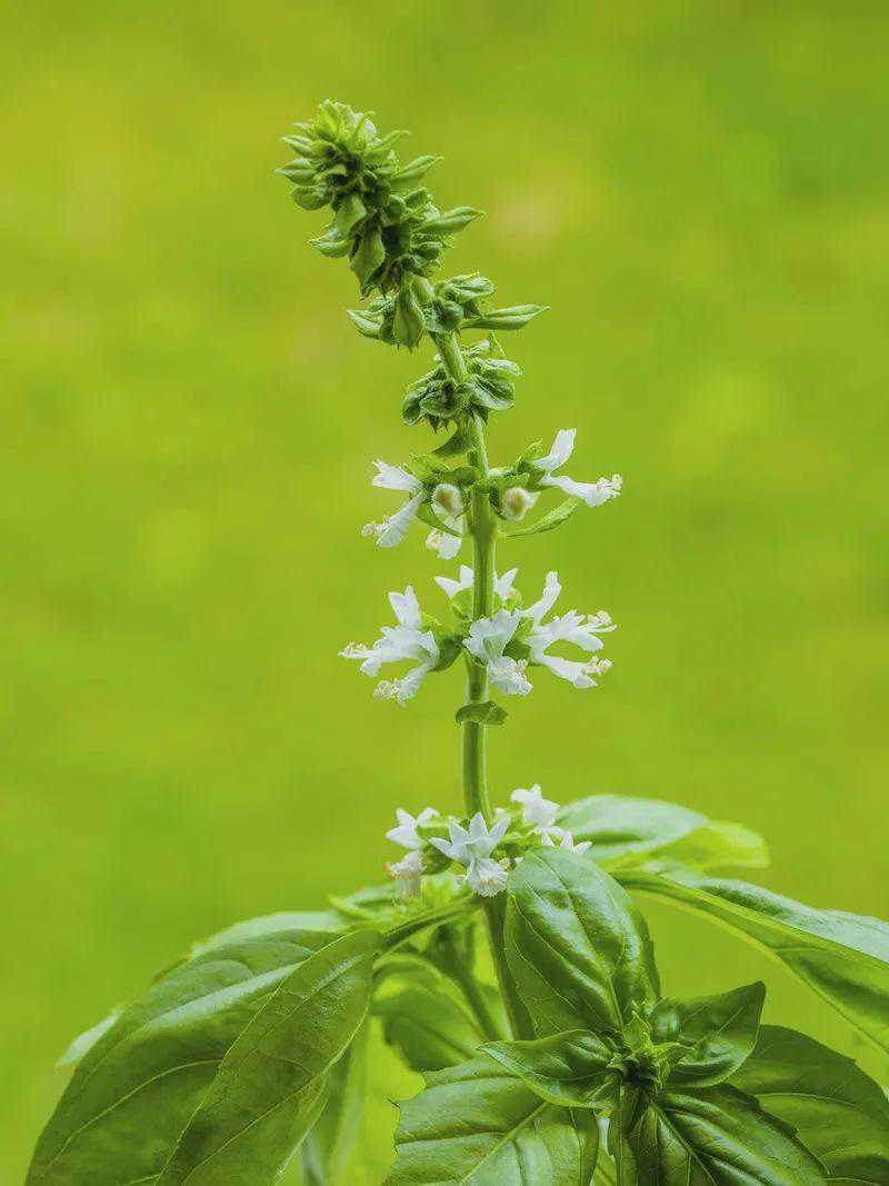 “SweetBasil(甜叶罗勒)”,欧洲的传统甜罗勒品种,绿叶白花,叶面凸如龟甲,芳香迷人,味甜柔和,西餐中常用来调味。“GenoveseBasil(热那亚罗勒)”,亦属于广义的甜罗勒家族,但叶片更长更平,略有辛辣味,正宗的意大利青酱(Pesto)必以此为配料。“LettuceLeafBasil(莴苣叶罗勒)”,植株相对低矮,却拥有甜罗勒中最大的叶子,叶片皱如生菜,口味清淡,最宜拌沙拉或包裹烤肉同食。