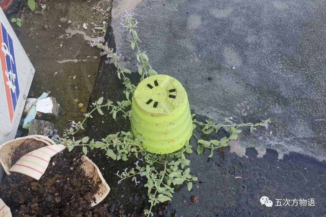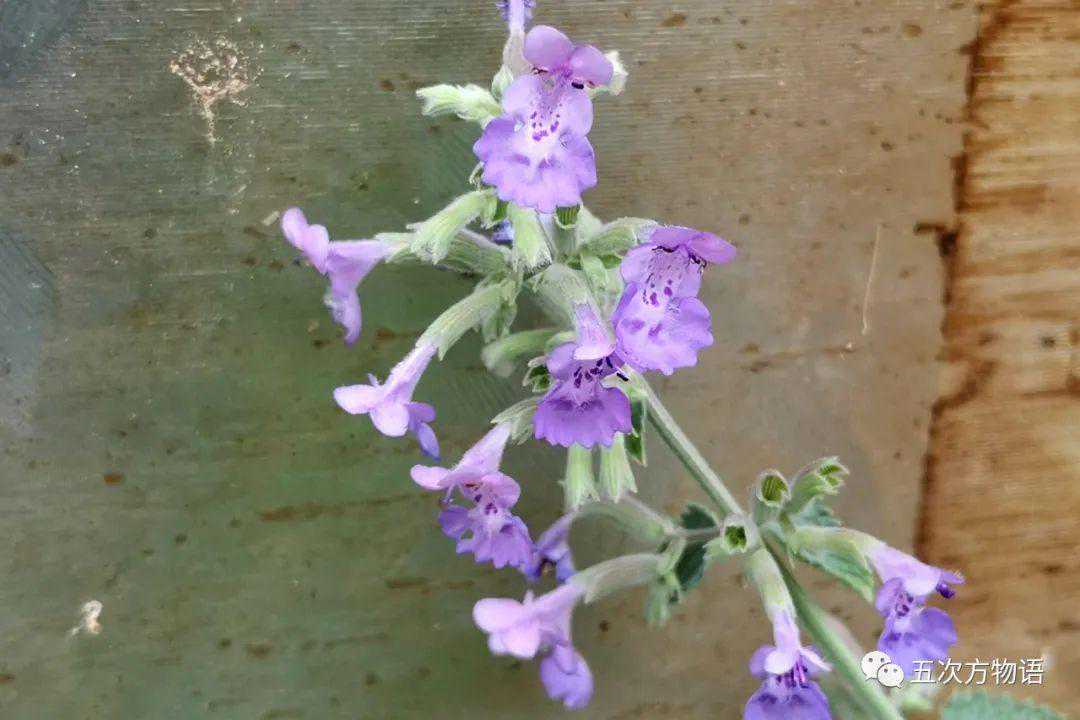 说到“荆芥”,我种的这棵才是真的,不过不是荆芥/Nepetacataria,而是“六座大山荆芥”,一个杂交品种,学名为Nepeta×faassenii'SixHillsGiant'。虽然不是荆芥本尊,但仍然具有“猫薄荷”的魅力,最后一图即是铁证:附近有一只大白猫,被我放在空调室外机上的“六座大山”所吸引,时常蹿过来“过一把瘾”,最终给我打翻在地
